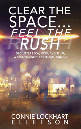 Clear the Space, Feel the Rush expands far beyond Kondo’s work. Author Connie Lockhart Ellefson shows how decluttering can be accomplished not only with our belongings (our “stuff”), but with our thoughts and emotions, and our bodies, as well.